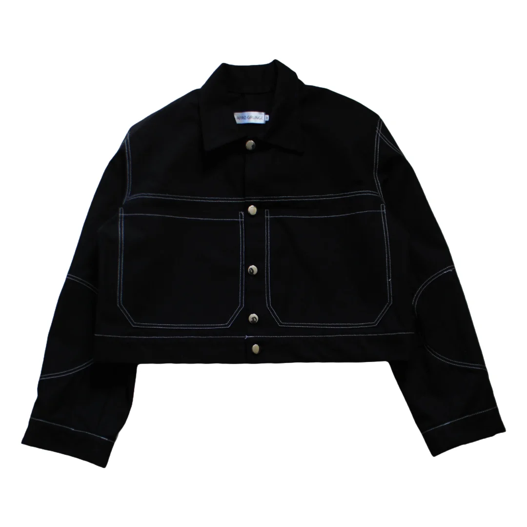 Our jackets are cropped in style with an semi oversized box shaped fit and two front patch pockets.